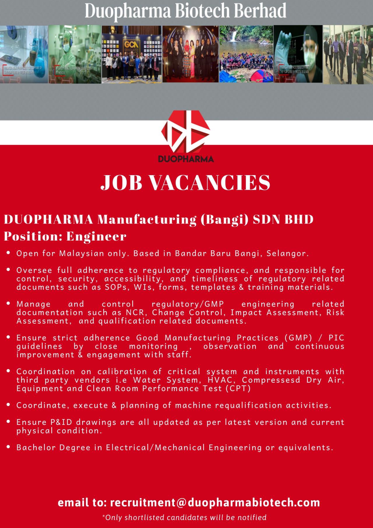 Getme Hired On Twitter Duopharma Biotech Berhad Is Hiring Engineer Interested Send Your Cv Resume To Recruitment Duopharmabiotech Com Https T Co Dlqzbe2wie Twitter